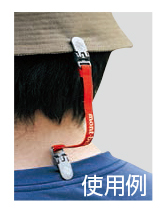 風が吹いても飛ばないよう、襟と帽子をしっかりと留めておけるクリップタイプの帽子留めです。テープ部分がゴムなので無駄なたるみがありません。金属は使用していません。