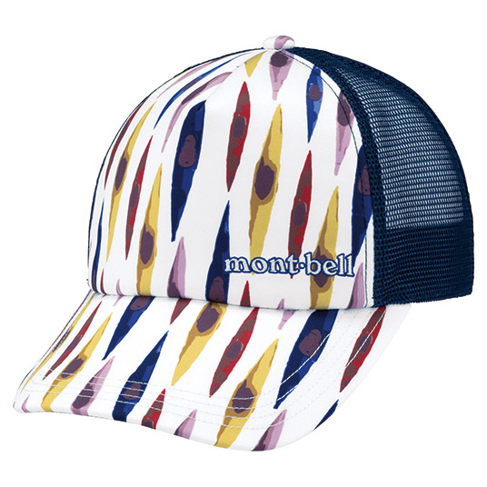 サイドから後頭部に通気性に優れたメッシュ生地を使用したキャップです。モンベルロゴやイラストをあしらっています。