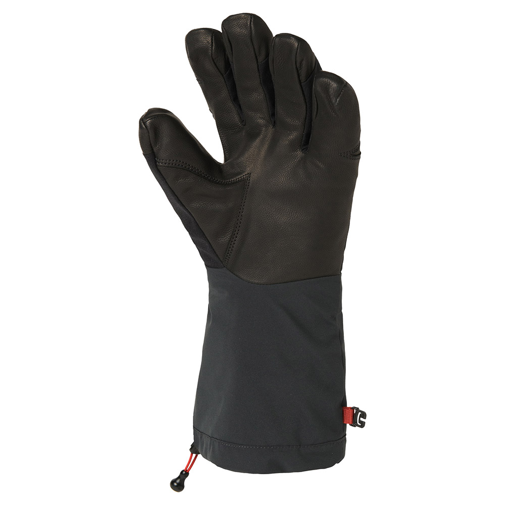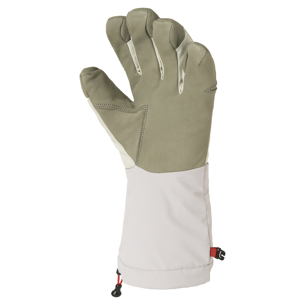 高い防水透湿性と保温性に加え、冬季登山や長期遠征に対応する耐久性を備えた高機能グローブです。アウターは手首をしっかりとホールドするアジャスタブルベルトを装備しており、保水しにくく凍りにくい素材を使っています。インナーは取り外すことで乾かしやすい構造です。別売のインナー(#1118842)を予備で携行すれば、数日の雪山登山でも快適です。