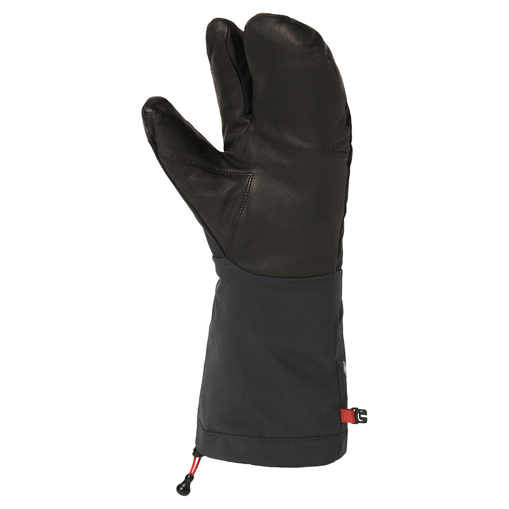 高い防水透湿性と保温性に加え、冬季登山や長期遠征に対応する耐久性を備えた高機能ミトンです。アウターは手首をしっかりとホールドするアジャスタブルベルトを装備しており、保水しにくく凍りにくい素材を使っています。インナーは取り外すことで乾かしやすい構造です。別売のインナー(#1118843)を予備で携行すれば、数日の雪山登山でも快適です。