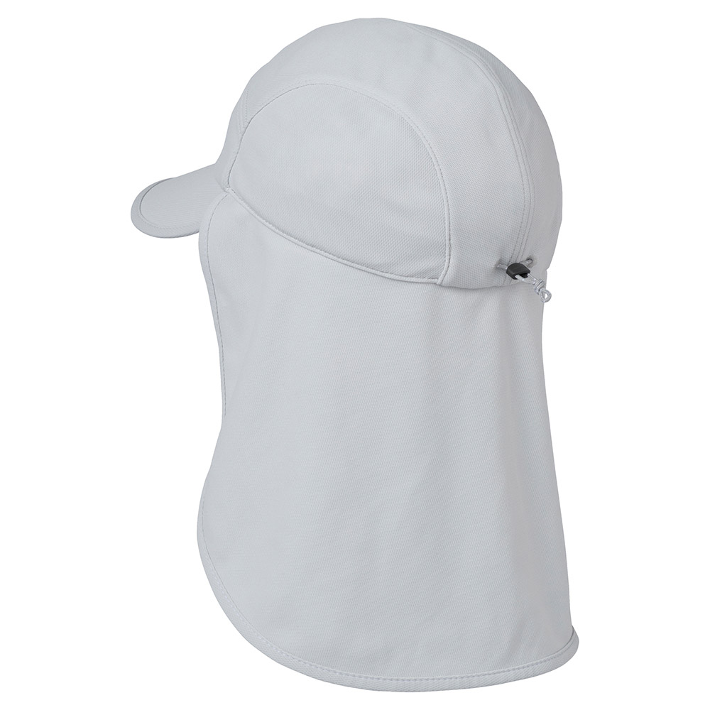 吸水拡散性があり乾きやすく、通気性に優れながら高い紫外線カット効果を備えたキャップです。日差しから首元を守るシェード付き。