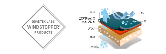 【素材】表地:ウィンドストッパー®ファブリクス バイ ゴアテックス ラボ[表:13デニール・バリスティック エアライト®ナイロン・リップストップ]