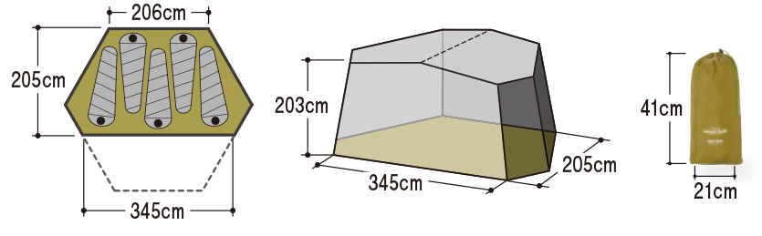 アストロドーム内部に取り付けて、居住空間を作ることができるオプションです。フロアには耐久性に優れた生地、本体には通気性のよいメッシュ地を採用し、暑い時期のキャンプなどに最適です。ファミリーでの使用に適した5人用です。