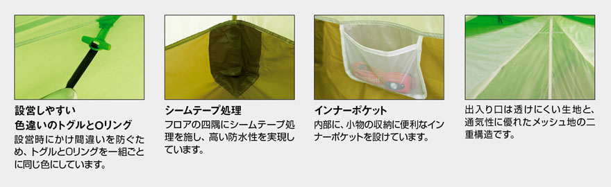 【本体重量】1.9kg(1.94kg) ※本体重量はポールを含む重量です。( )内はスタッフバッグを含む総重量です。