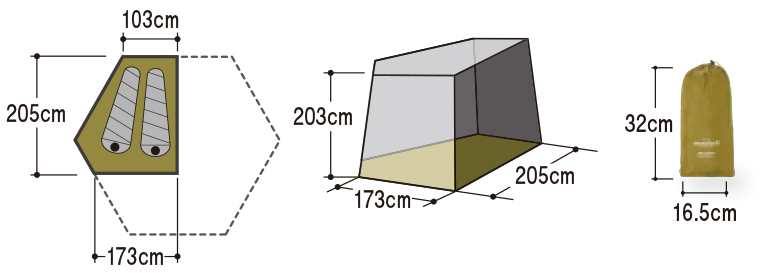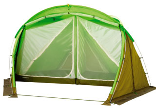 アストロドーム内部に取り付けて、居住空間を作ることができるオプションです。フロアには耐久性に優れた生地、本体には通気性のよいメッシュ地を採用し、暑い時期のキャンプなどに最適です。プライベート空間の間仕切りとしても最適なL(左半分)です。
