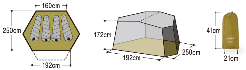 アストロドームS内部に取り付けて、居住空間を作ることができるオプションです。フロアには耐久性に優れた生地、本体には通気性のよいメッシュ地を採用し、暑い時期のキャンプなどに最適です。ファミリーでの使用に適した4人用です。