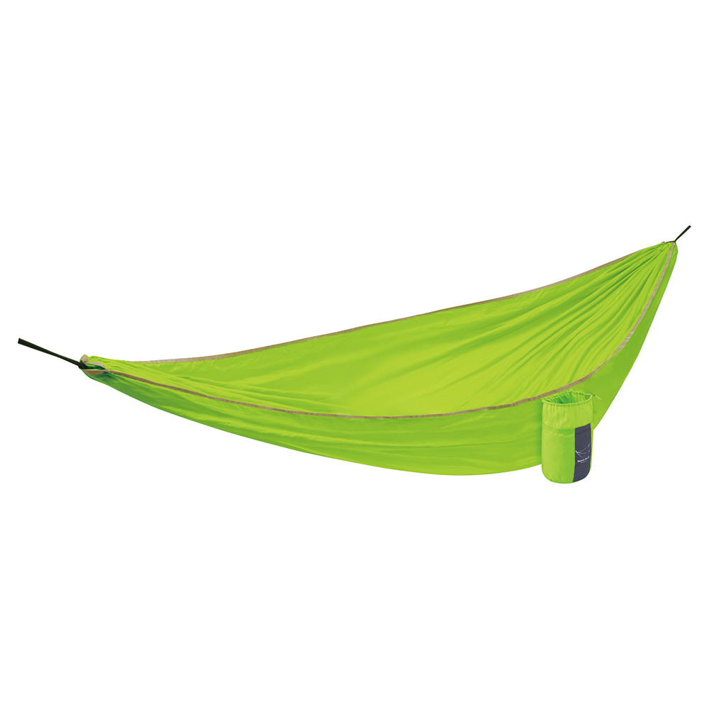設営が簡単で、気軽にフィールドに持ち出せる軽量・コンパクトなハンモックです。本体には軽量ながらも強度に優れ、肌触りのよいサラサラとした生地を使用。木などの支柱に簡単に取り付けできるツリーストラップが付属します。使用時に小物入れにもなる収納ポケット付き。