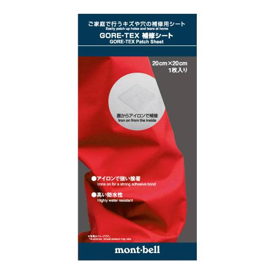 ゴアテックスメンブレン(フィルム)にナイロントリコットをラミネートした生地を用いた補修用シートで、テントや雨具の補修にも使用できます。ご使用の際には添付の取扱説明書をよく読んでお使いください。