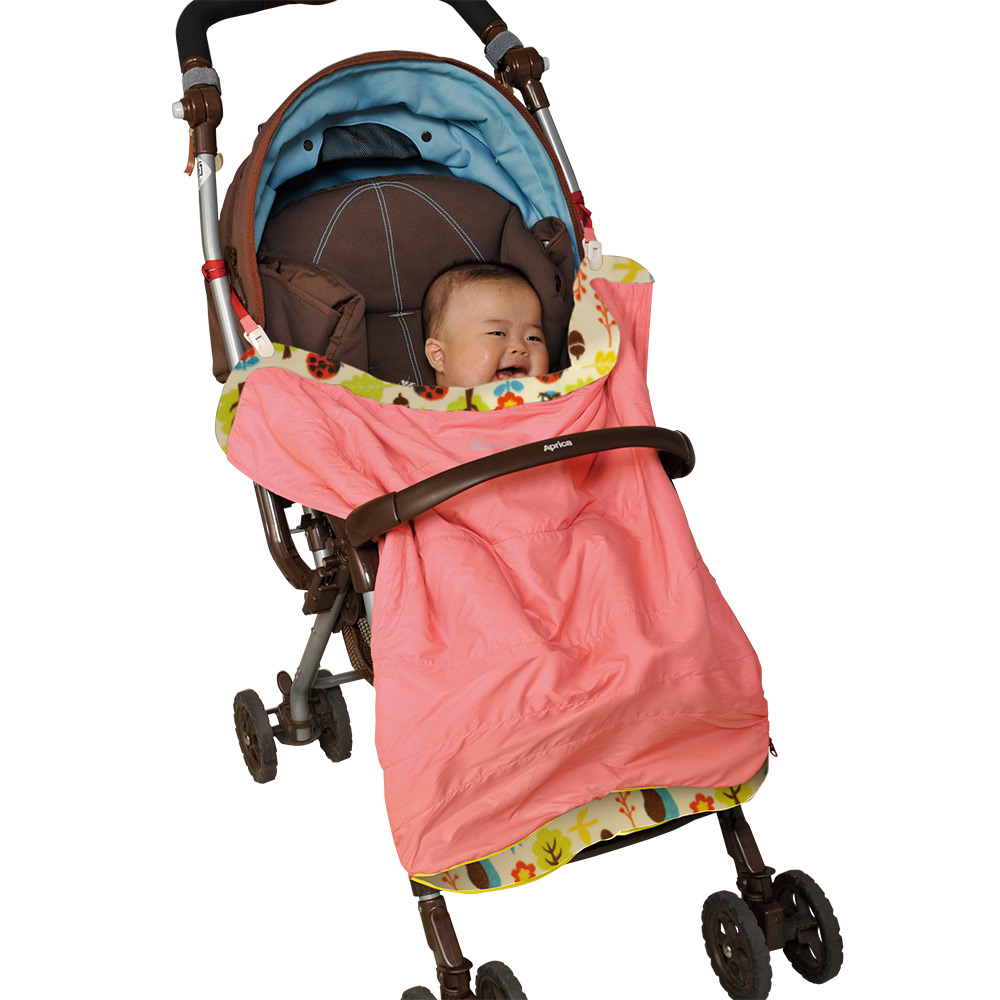 ベビーカーに乗せた赤ちゃんを冷たい風から守るブランケットです。柔らかくて暖かなフリース生地に、心地よい肌触りのナイロン生地を組み合わせて防風性を高めています。付属のストラップでベビーカー本体に簡単に固定可能。足ポケットに足を入れておけば風が吹いてもまくれ上がらず暖かで、下部のジッパーを開けば靴を履かせた状態でも使用できます。汚れてもご家庭で手軽に洗濯できます。