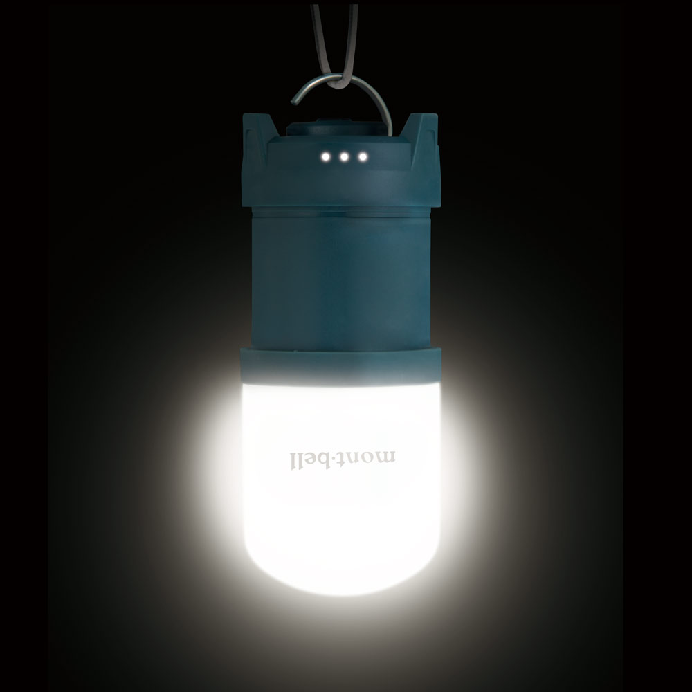 周囲を明るく照らす温白色LEDを使用した大光量600ルーメンのUSB充電式ランタンです。可動式シェードを使用した、ムダのないコンパクトなデザインで、底部にはテント内などで吊り下げて使用できるフック付きです。6400mAhのリチウムイオン電池を内蔵し、予備のモバイルバッテリーとしても使用できます。