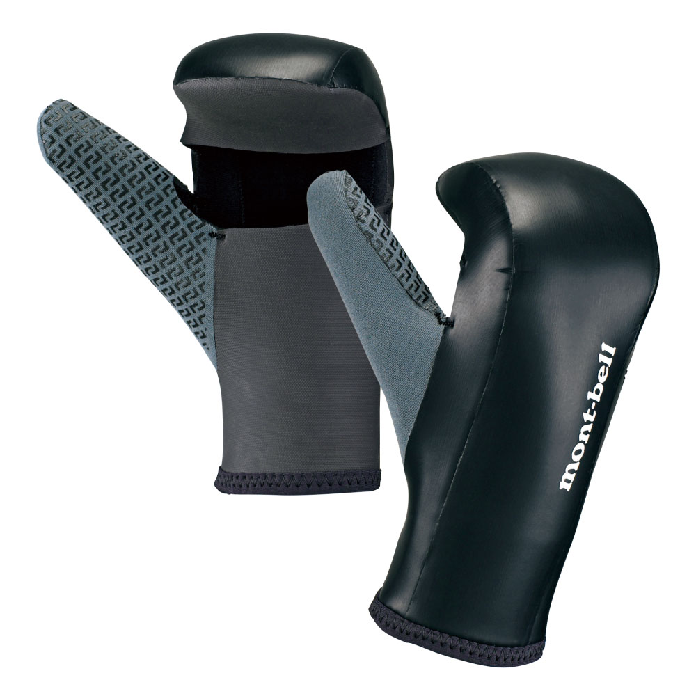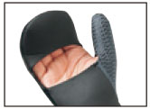手の保護と防寒を兼ねながら、パドルを持つ掌の感覚にも優れたミトンタイプです。掌部分をくり抜いてパドルを素手で握ることができるデザインです。