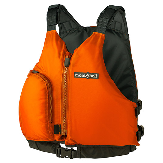 モンベルのライフジャケットは、カヤックやカヌー、ラフティング用に開発されたベストであり、海難救助用の救命胴衣とは規定・使用目的が異なります。ご留意の上、添付の説明書をよく読んでご使用ください。