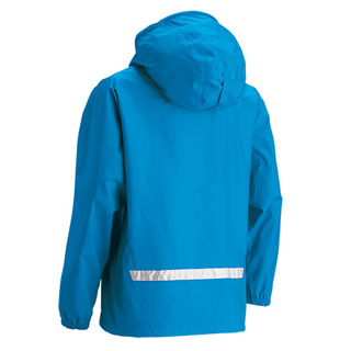 コストパフォーマンスに優れたレインウエアです。雨の日も楽しく過ごせる鮮やかなカラーリングです。フードの調節コードは枝などに引っ掛かりにくいよう、フード内部に設けました。前面胸部分と背面に反射マークとテープを配し、安全性にも配慮しています。トレッキングから通学まで幅広くご活用ください。