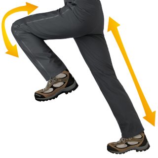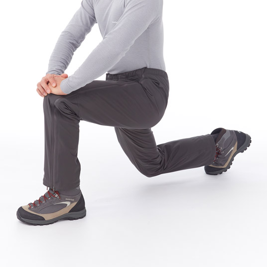 サイドを全開にすることができ、登山靴を履いたままでも容易にパンツの着脱が行えます。