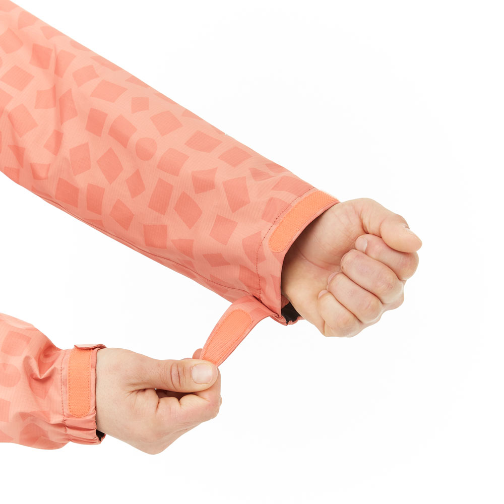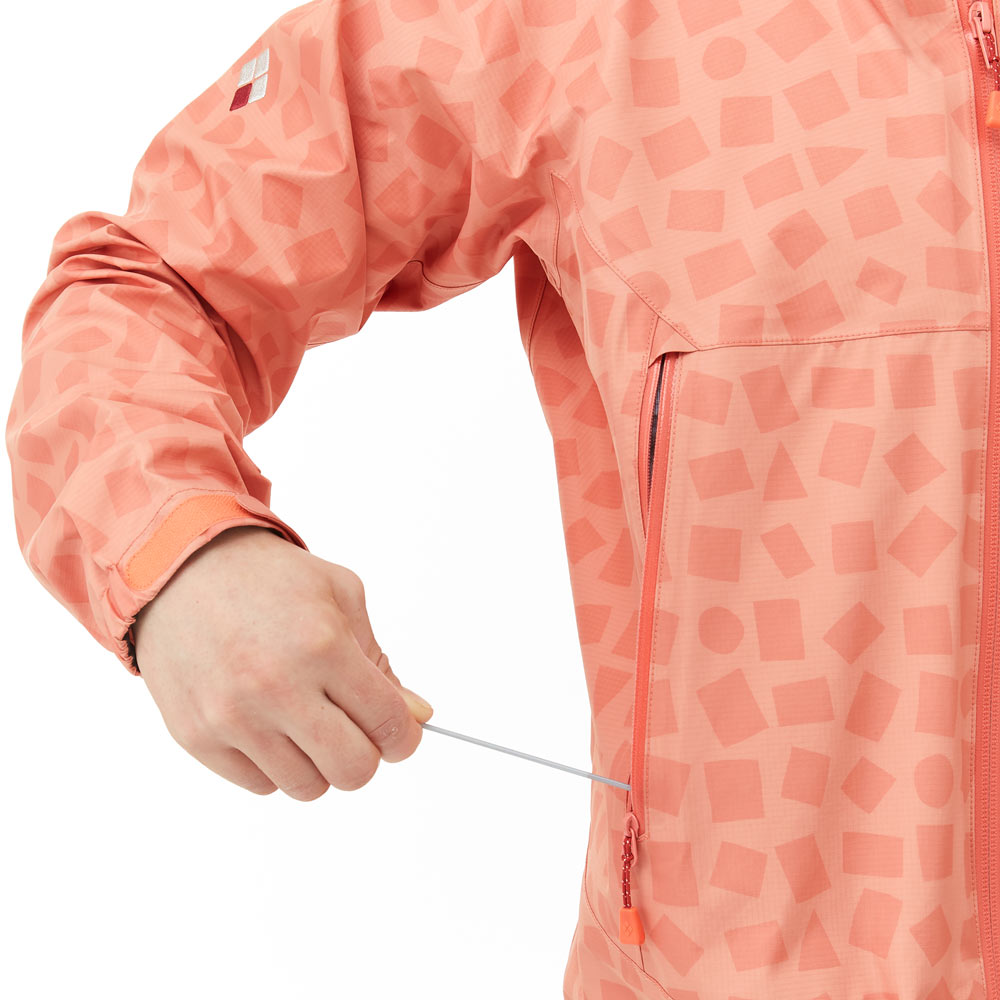 優れた機能をバランスよく備えたスタンダードモデルです。華やかな柄をプリントしたタイプです。ややゆとりのあるシルエットなので、厚みのある中間着の上にも着用しやすくなっています。ゴアテックス ファブリクスを使用したモデルとして、最もリーズナブルな価格を実現しています。