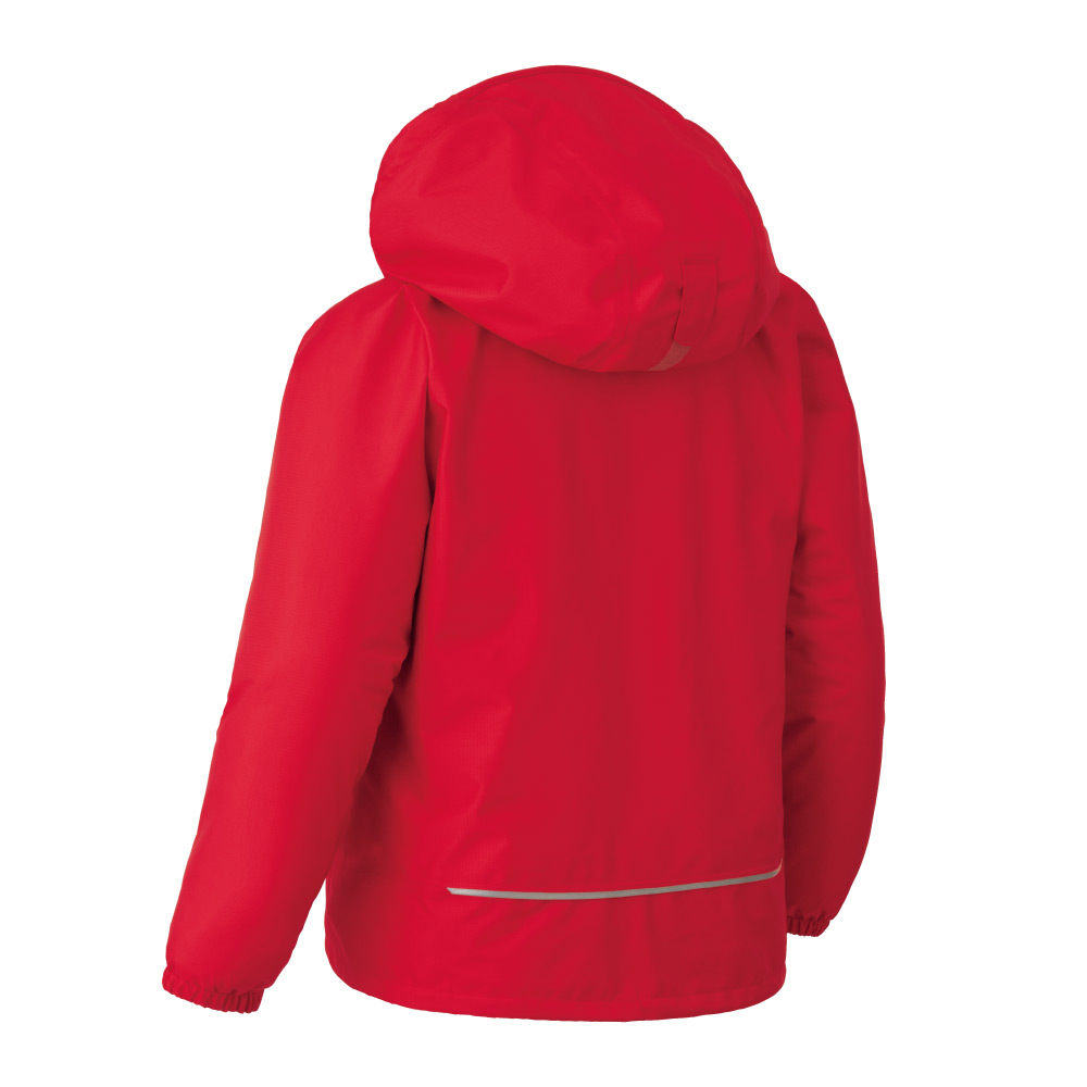 カラフルな配色で雨の日のお出かけも楽しくなる、上下セットのレインウエアです。高い防水透湿性を備えた3レイヤーの生地を使用しているため、裏面の肌離れもよく快適な着心地。前面のアクアテクト®ジッパーや調節可能なフードなど、さまざまな機能をバランスよく備えています。前面胸部分と背面に反射マークとテープを配し、安全性にも配慮しています。