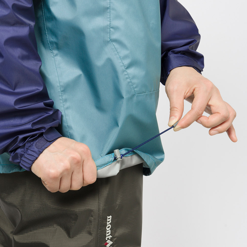 【特長】トライアクスルフード / ロールアップフード / アクアテクト®ジッパー / アルパインカフ / 裾の調節機能 / スマートソーイング / スタッフバッグ付き