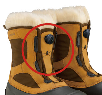 少ない力でしっかりと締まり、足全体が優しく均等に包み込まれるような独特のフィット感が得られます。たいへん簡単に着脱でき、歩行中に靴ひもがほどけるといった心配もありません。