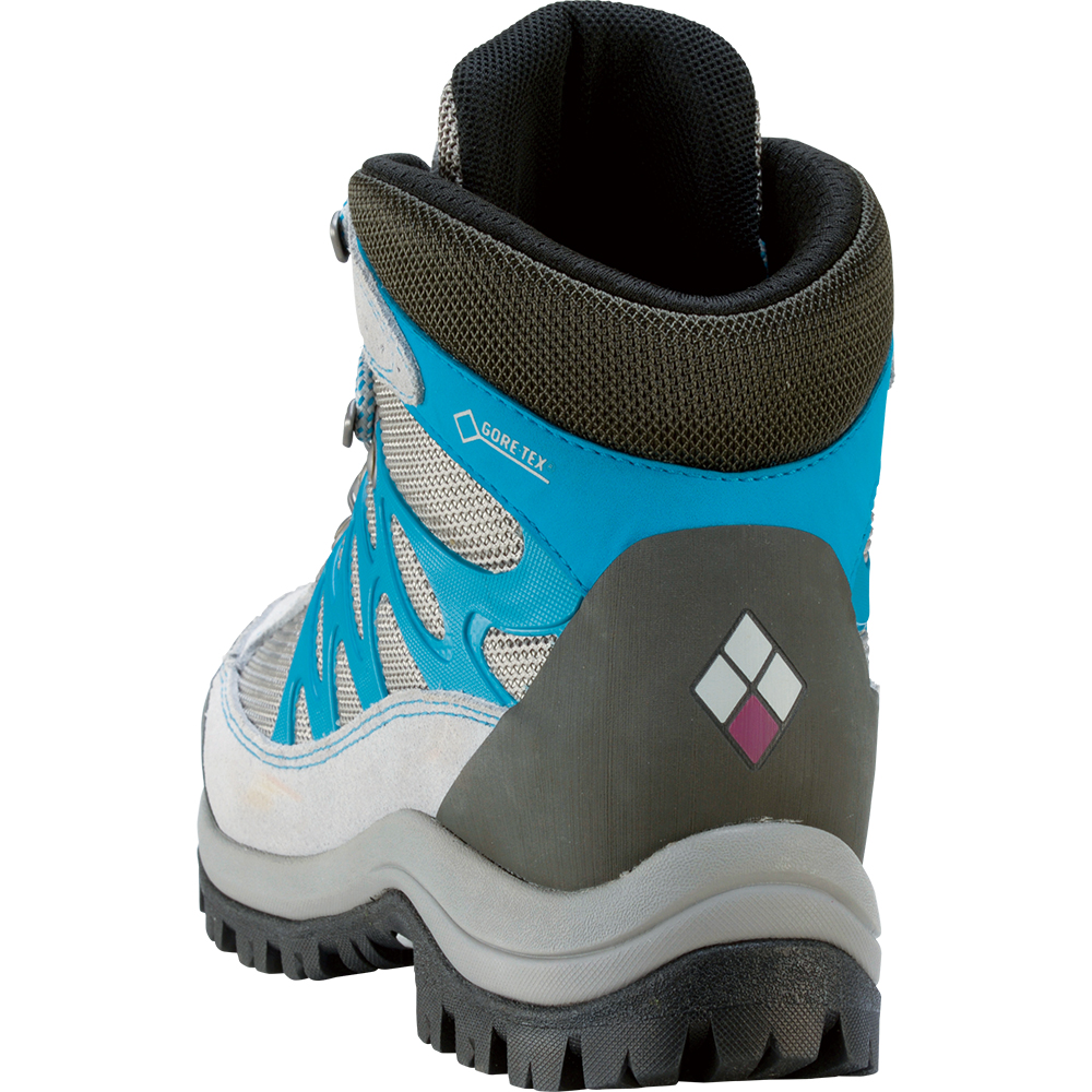 軽装備の登山や小屋泊登山などに適したミドルカットの全天候型ブーツ。足幅が狭い女性に最適なラスト(靴の木型)を使用したワイズD~E相当のナローモデルです。アッパーにはしなやかで耐摩耗性に優れ、ゴアテックスファブリクスの透湿性を最大限に生かすポリエステルメッシュを使用し、樹脂製パーツとレザーで補強を施すことで、横方向へのぶれを軽減しています。