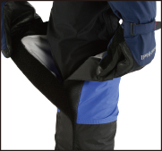 脚とブーツにフィットする立体的なデザインにより、だぶつきを軽減するとともに雪の浸入も防ぎます。