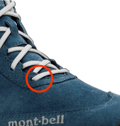 靴ひもを通す穴を細長くすることで、締め込みやすく緩みにくくなっています。