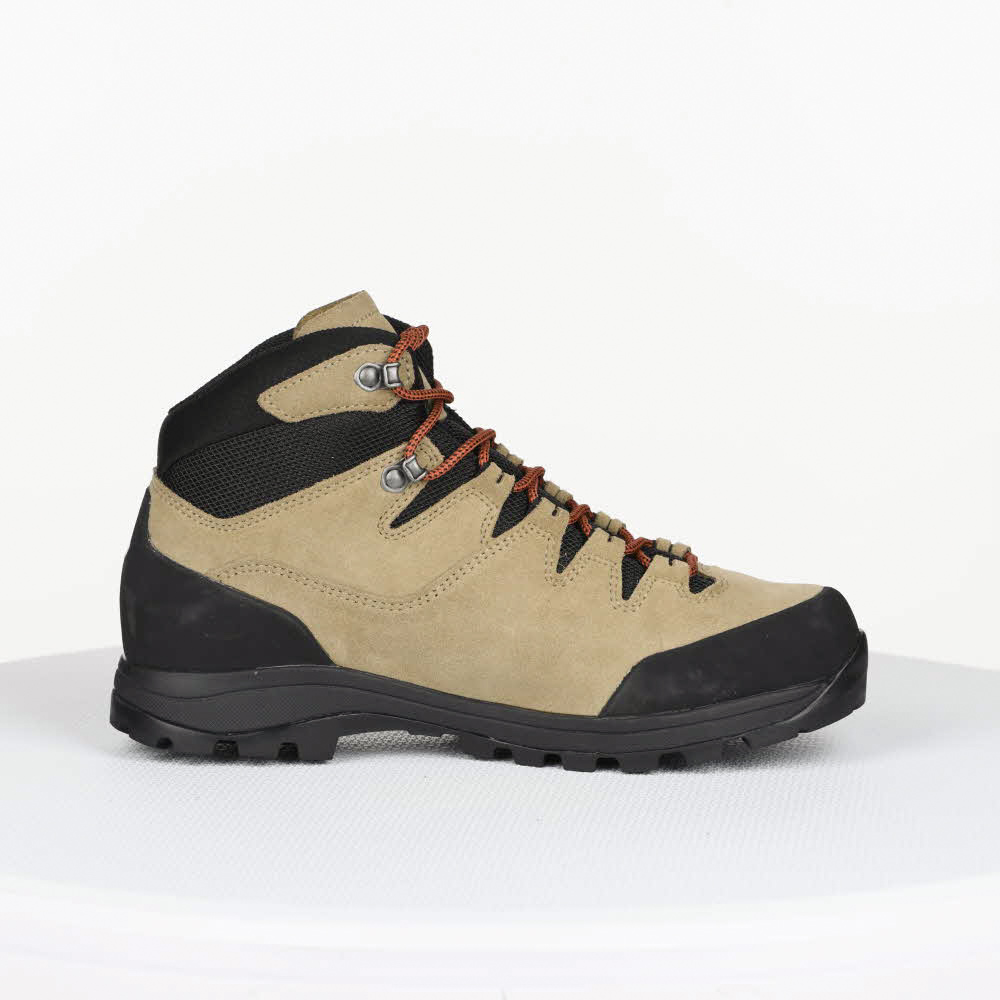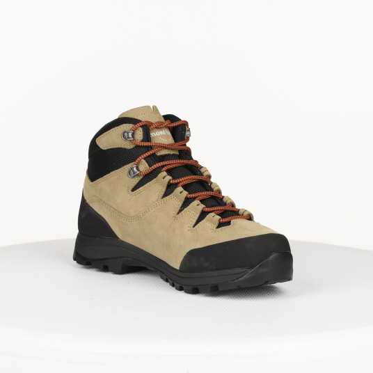 軽量で柔らかく、軽装備のトレッキングから小屋泊登山まで幅広く対応するミドルカットの全天候型レザーブーツです。アッパーはスエードレザーにゴアテックスファブリクスを組み合わせ、前部を継ぎ目のない一枚革で包み込むことで抜群のホールド感と耐久性、防水透湿性を実現しています。
