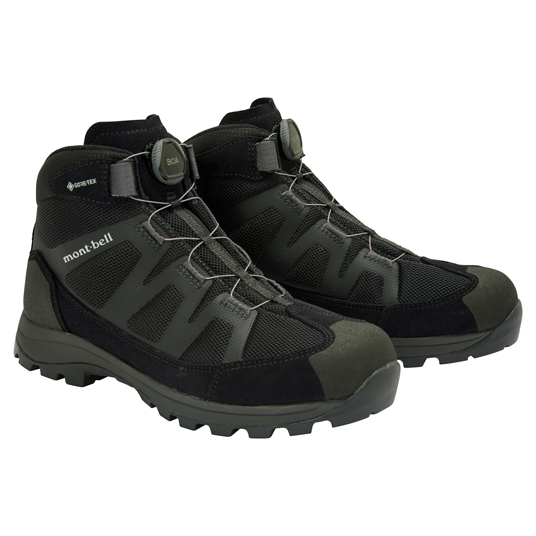 軽量でフィット感に優れ、履き心地の良いミドルカットの全天候型ブーツです。軽装備のトレッキングや砂地が多い富士登山などに適しています。「BOA®フィットシステム」を採用し、ダイヤルを回すことで素早くフィット感の調節ができ、脱ぎ履きも容易に行えます。アッパーには世界最高レベルの防水透湿性を誇るゴアテックスファブリクスを使用し、メッシュと組み合わせることで優れた透湿性を実現。スエードレザーと樹脂のシートで補強を施し、ガレ場や砂地にも対応する耐久性を備えています。足囲が大きい方に適したワイドモデルです。