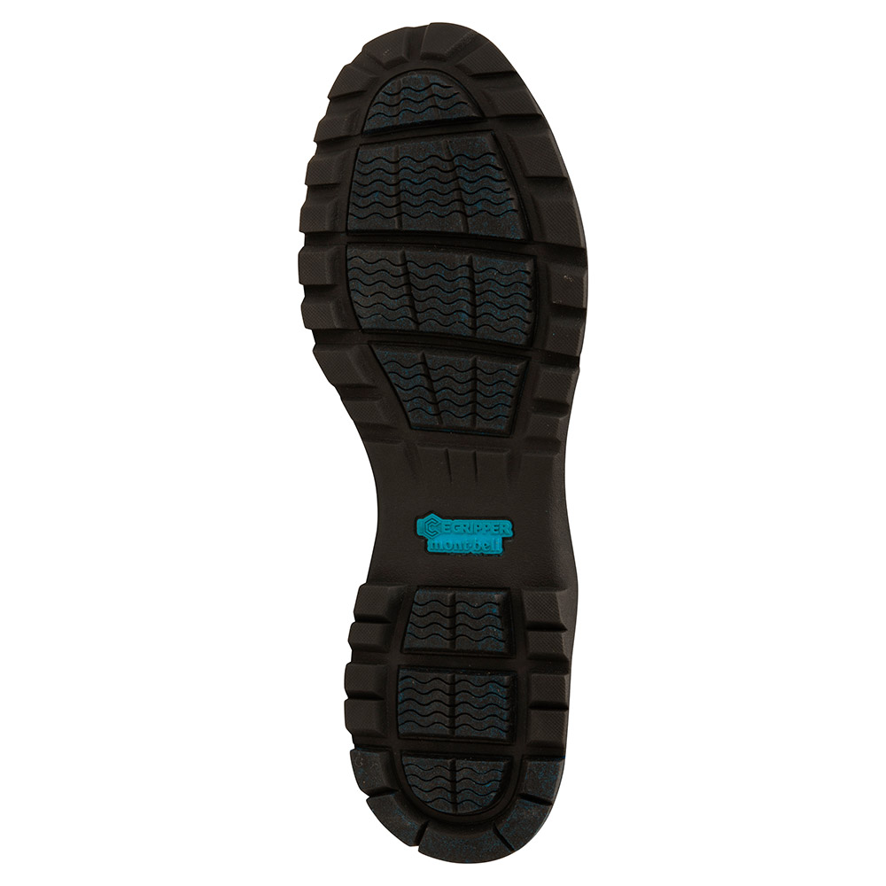 ラバーに練り込まれたポリエステル繊維が、スリップをまねく氷表面の水膜を破り、ソールに配した細かな溝から排水。ハイグリップラバーが氷表面を直接とらえる氷専用ソールです。