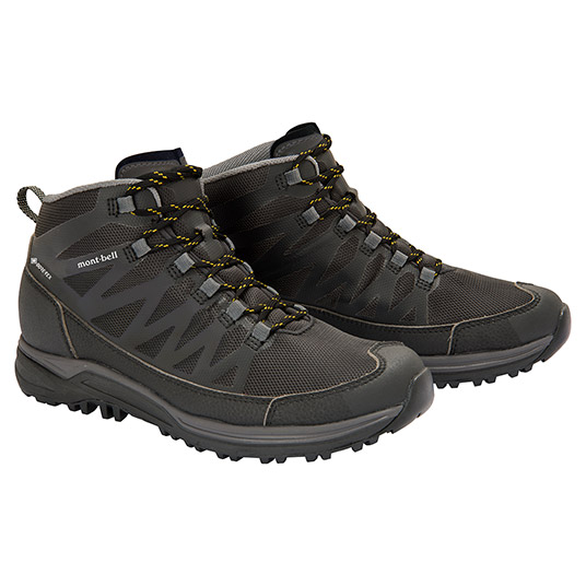 軽量で、低山ハイキングやキャンプに適したミドルカットの全天候型ブーツです。アッパーには、ゴアテックスファブリクスの透湿性を最大限に活かす、しなやかで耐摩耗性に優れたメッシュを使用。合成皮革と樹脂のシートで補強を施しています。薄手のソックスにも合わせて履いていただけます。足幅の広い方に適したワイドモデルです。