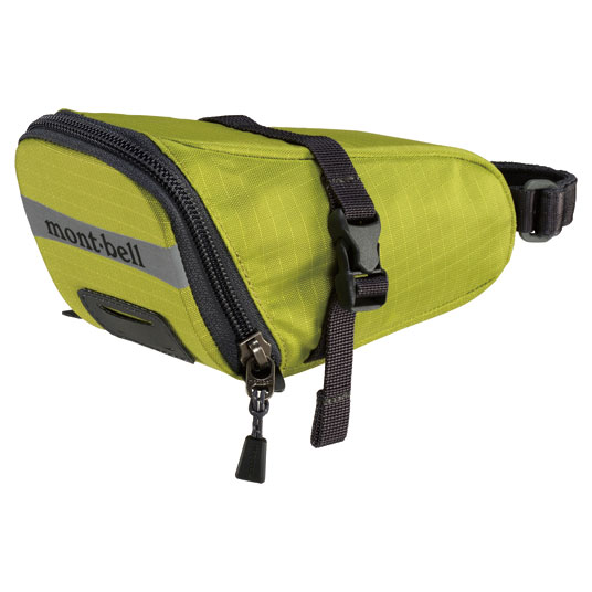 工具類などの収納に適したサドル用の軽量ポーチです。乗り降りやペダリングの妨げにならないコンパクトなフォルムでありながら、開口部が大きく開くため収納物の出し入れが容易。シートピラーにベルクロテープを巻き付け、サドルレールにバックル付きベルトを留めるだけで簡単に装着することができます。車のライトなどを反射して光るプリント、バックライトホルダー付き。