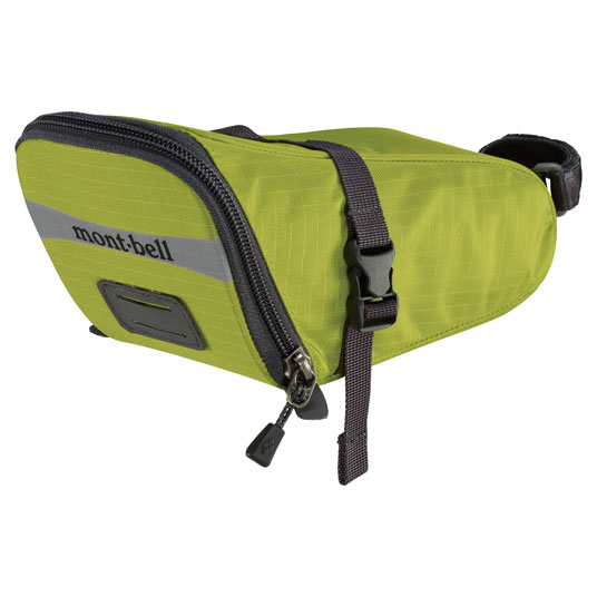 工具類などの収納に適したサドル用の軽量ポーチです。乗り降りやペダリングの妨げにならないコンパクトなフォルムでありながら、開口部が大きく開くため収納物の出し入れが容易。シートピラーにベルクロテープを巻き付け、サドルレールにバックル付きベルトを留めるだけで簡単に装着することができます。車のライトなどを反射して光るプリント、バックライトホルダー付き。