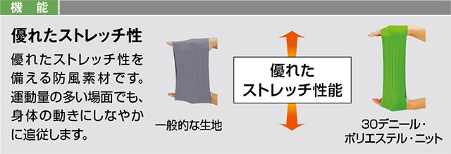 縦・横方向へのストレッチ性を持つ素材を使用。