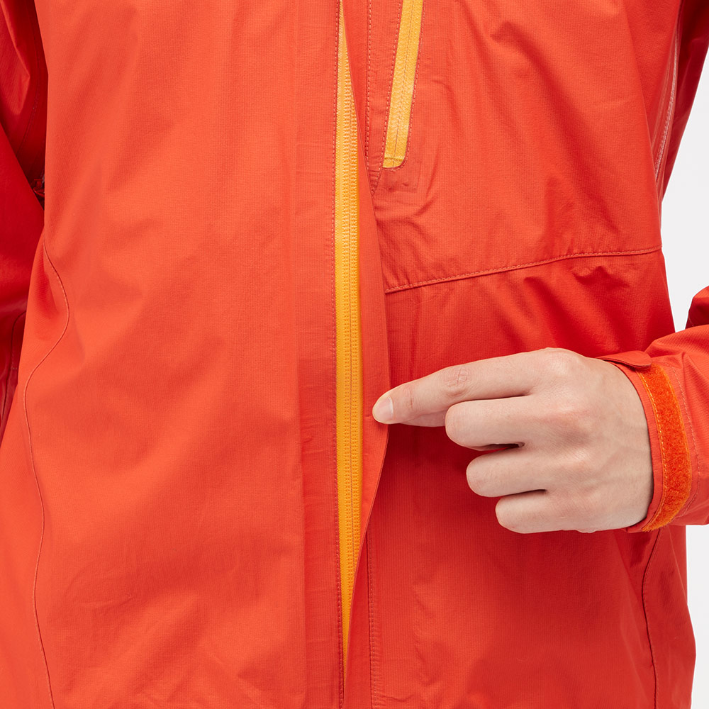 モンベルでは、レインウエアに求められる耐水圧20,000mm以上をクリアした素材のみを使用しています。