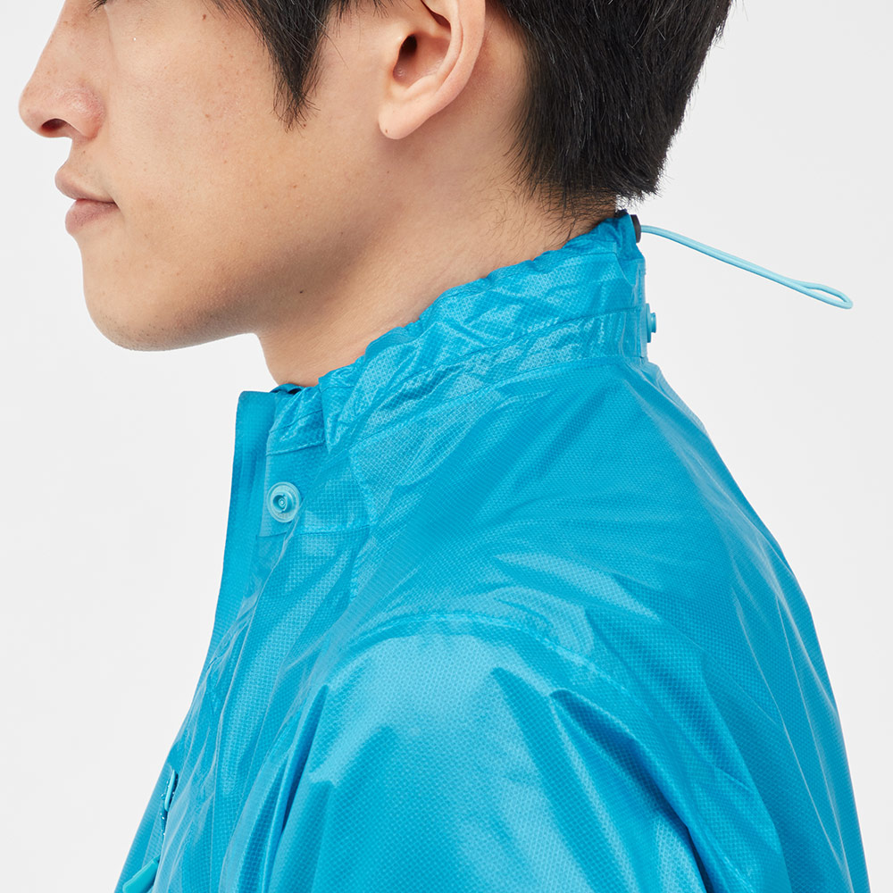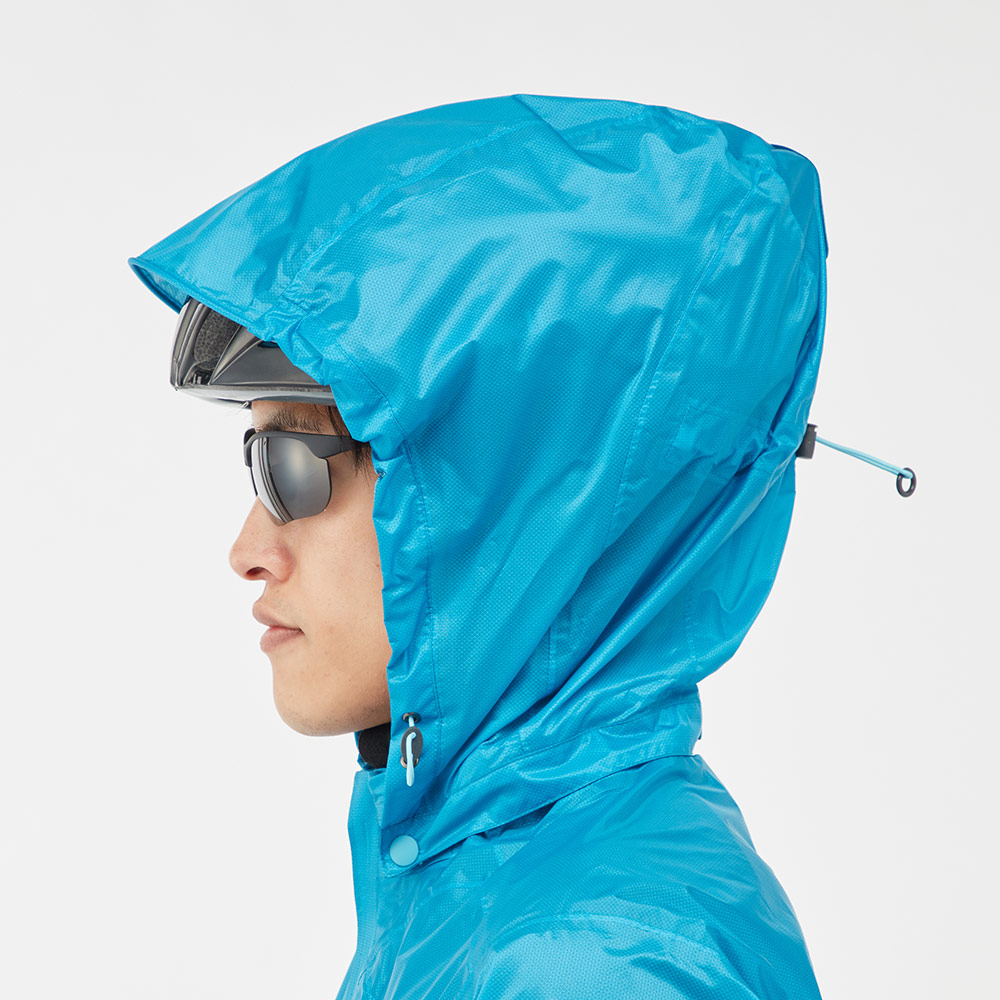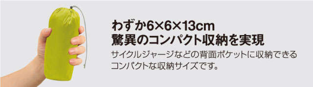 驚異の超軽量・コンパクト性を達成したサイクルレインウェアです。サイクルジャージなどの背面ポケットに入る収納サイズなので、突然の雨に備えての常時携行に最適です。独自の防水透湿性素材を使用し、バタつきにくいシルエットです。取り外し式フードや脇のベンチレーションなど、雨天時に快適に走行するための機能を搭載しています。