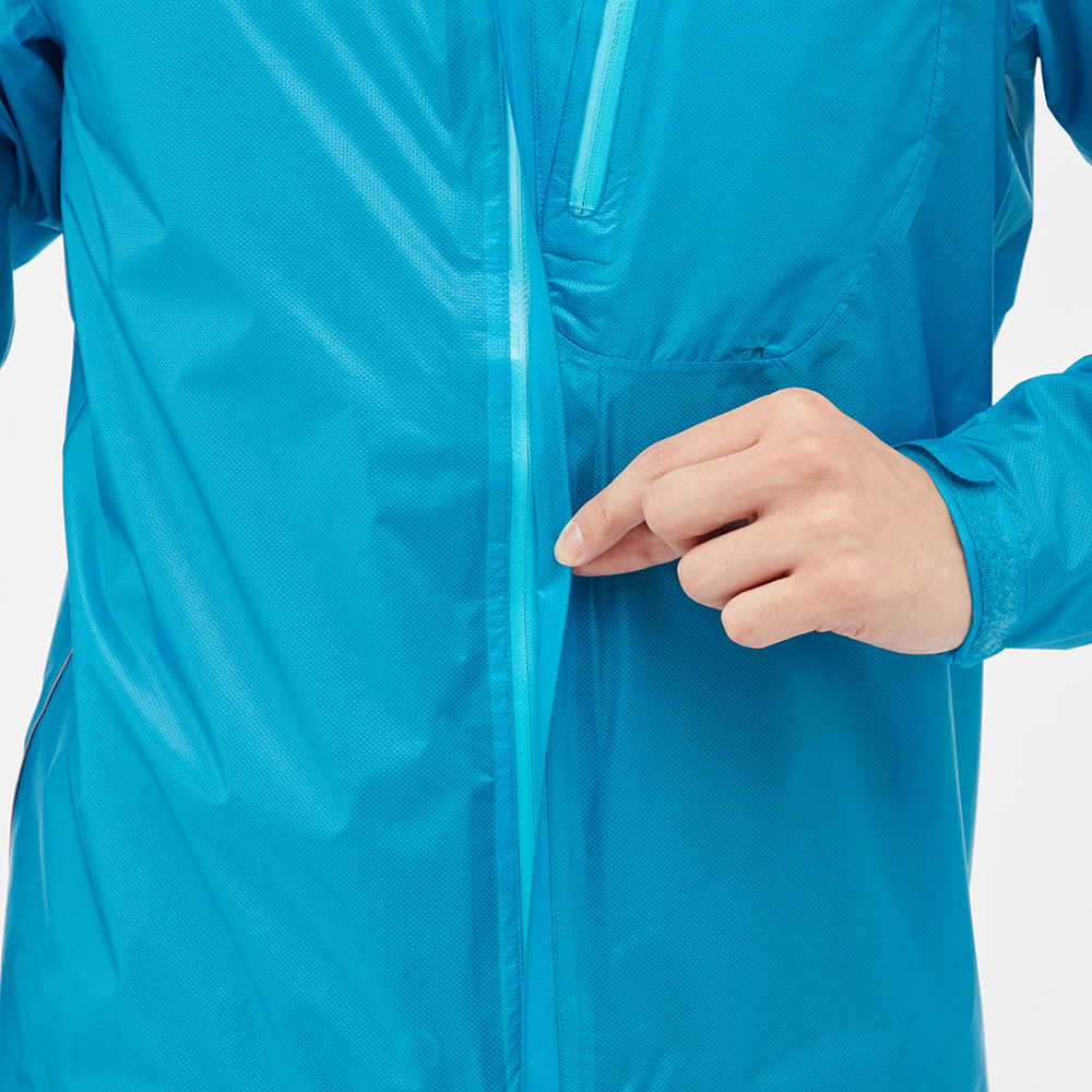 モンベルでは、レインウエアに求められる耐水圧20,000mm以上をクリアした素材のみを使用しています。