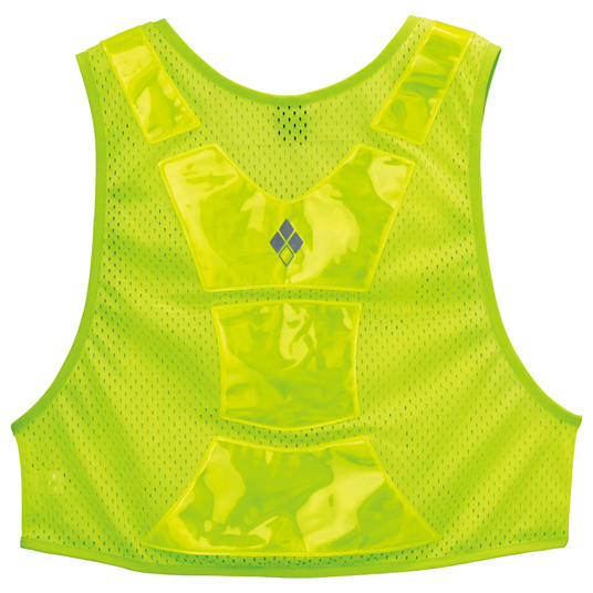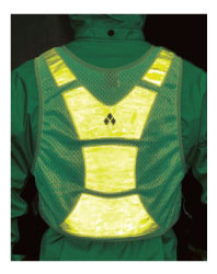 ウエアの上から着用する、反射材を使用したベストです。輝度に優れた微細なマイクロプリズムの反射材を使用し、夜間走行時やツーリング時の視認性を飛躍的に高めます。コンパクトに収納でき、携行に便利です。