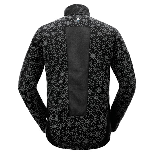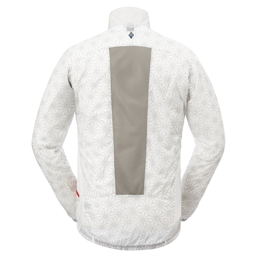 軽量な表地に、視認性に優れるリフレックプリントを施したウインドシェルです。車のライトなどが当たると反射して光り、夜間走行の安全性をサポートします。脇と背面にはメッシュ地のベンチレーターを設け、蒸れを素早く解消。右脇のポケットに収納可能なポケッタブル仕様です。