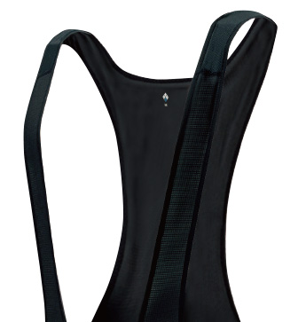 サスペンダーは激しいライディングでもずれにくいパターンを使用。