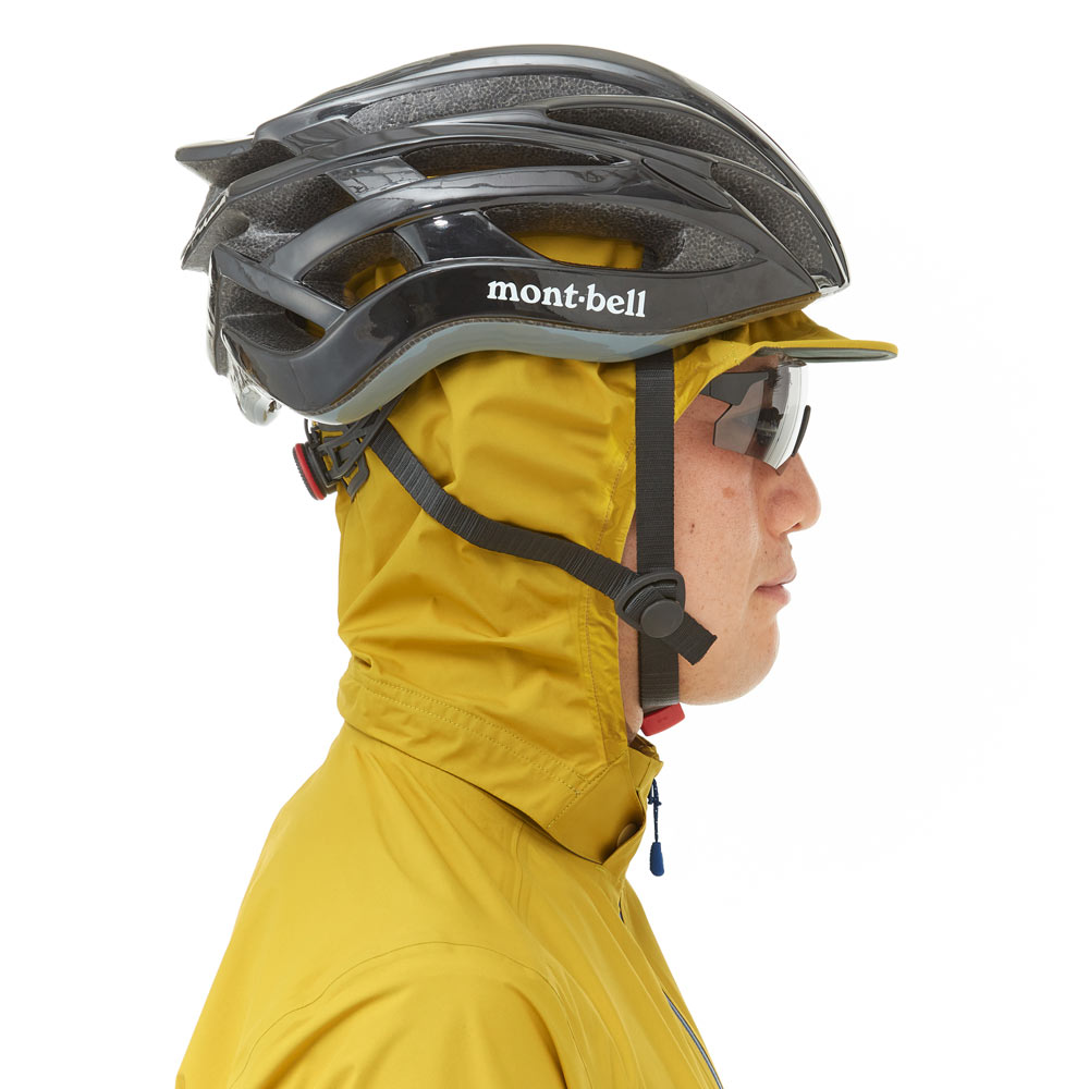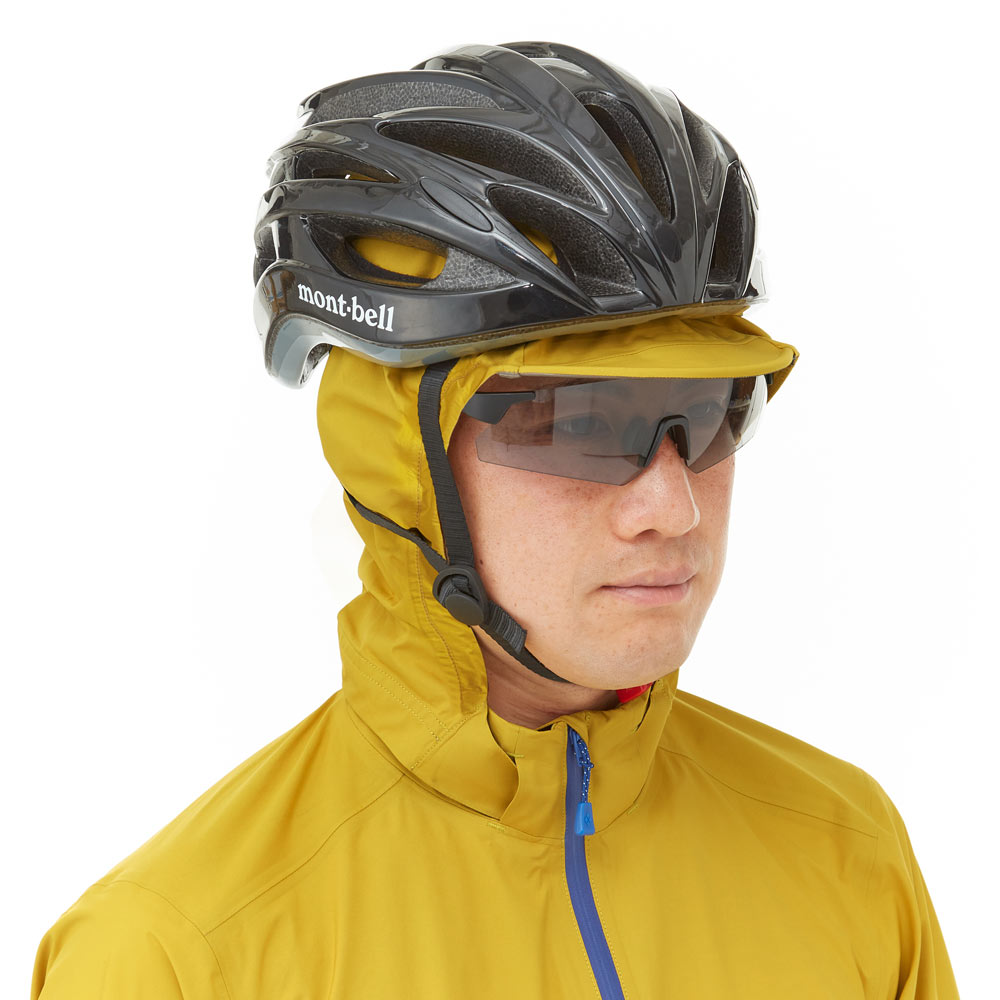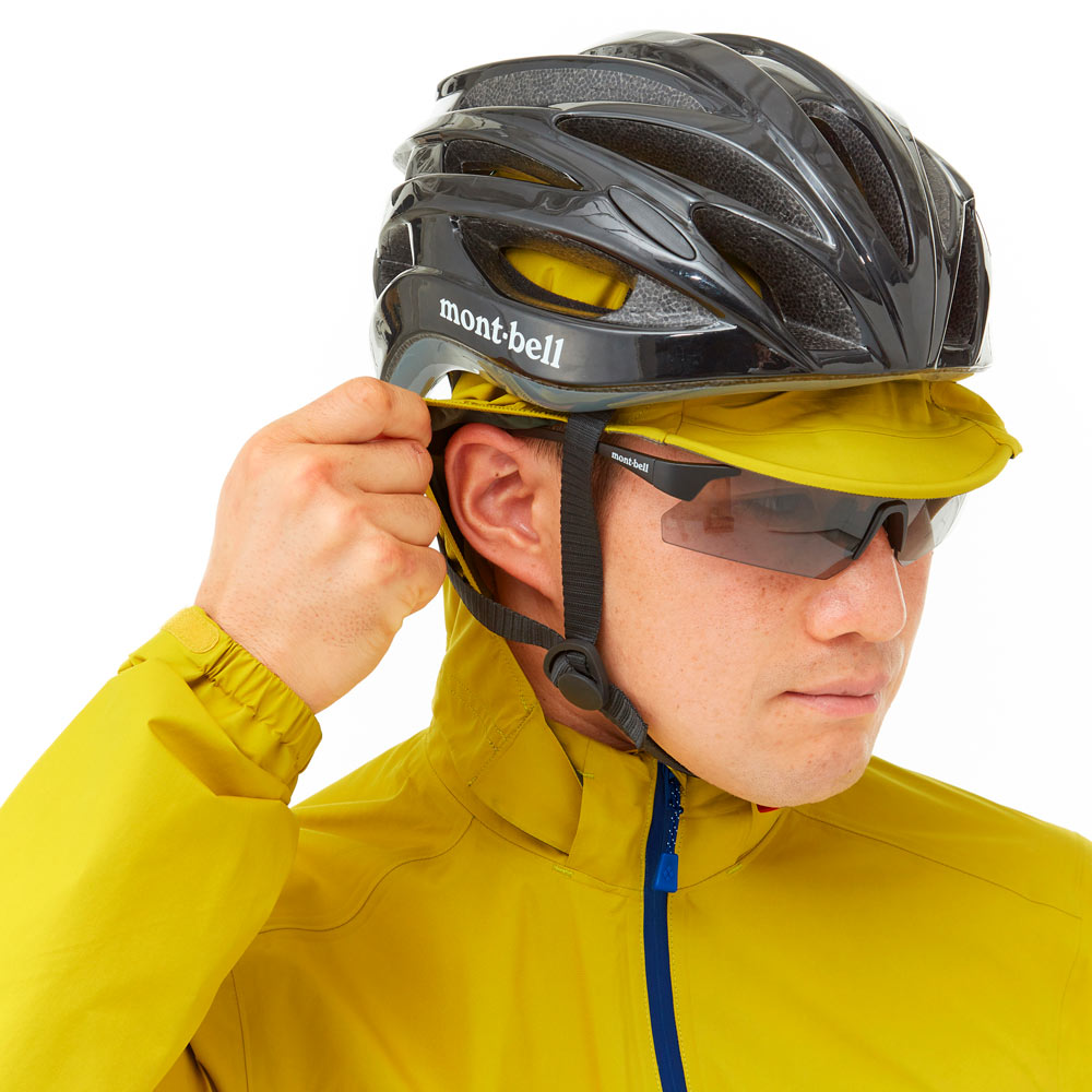 ヘルメットの下に着用できるフードは、頭にフィットしライディング時のバタつきを軽減します。また周りの音が聴きとりやすいように、頬にかかるフードを耳にかけることが可能です。視界を遮らない短めのツバを備え、サングラスと顔の隙間に吹き込む雨を防ぎます。フードは取り外すことができます。