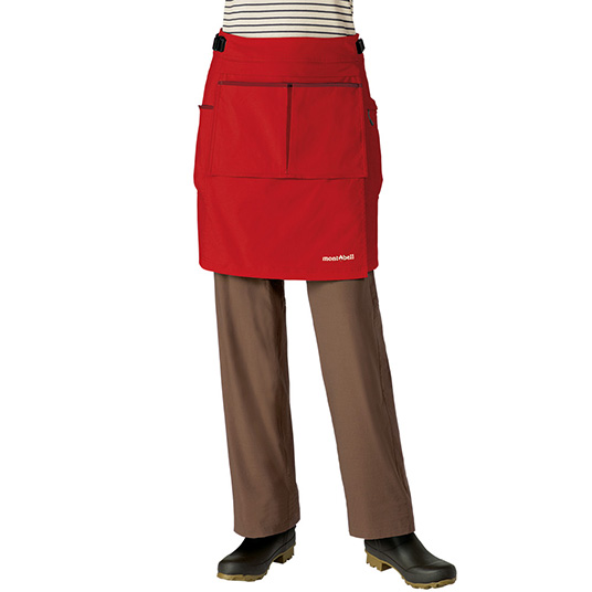 フロント部分の道具入れを取り外すことで、シンプルな巻きスカートとして着用できます。