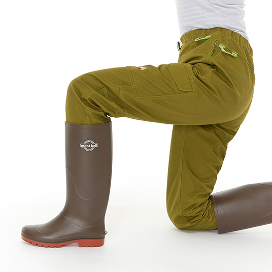 太ももの付け根と、膝裏に立体裁断を施した独自のパターンを採用。しゃがんだ際につっぱり感が少ない、快適な着用感です。