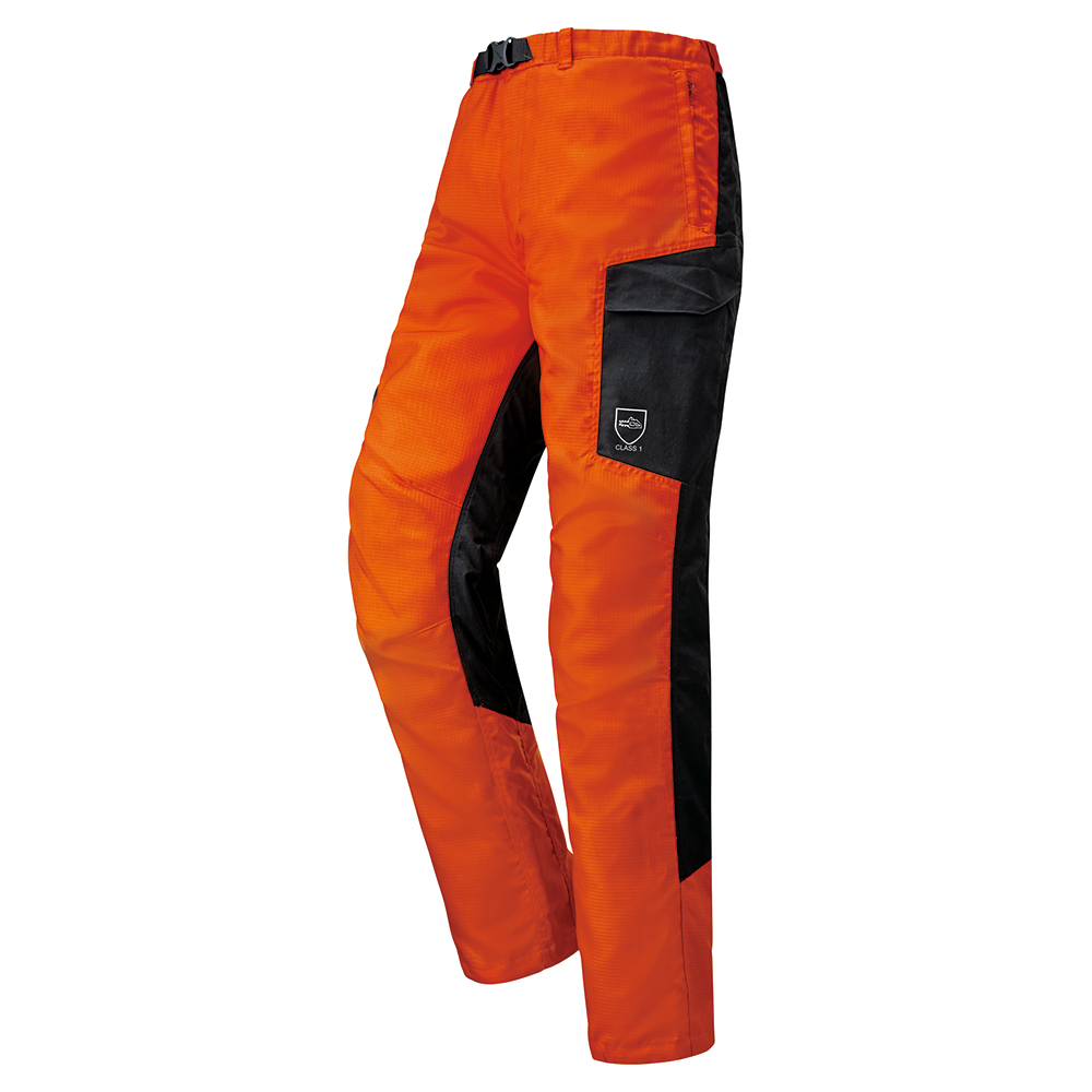 チェーンソーの刃が当たる可能性がある両足前部に特殊保護材を内蔵した林業用パンツです。前面には軽量・高強度素材バリスティック®ウルトラを使用。背面にはストレッチ性を備えた素材を使用し、膝に立体裁断を施すことで優れた運動性を実現しています。※商品の特性上、裾上げはできません。
