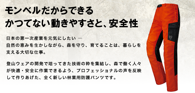 表地は高強度のバリスティック®ウルトラナイロンを使用し、他社製品と比べて軽量でありながら、パンツの背面にストレッチ素材を使用することで生地強度と動きやすさを両立。すでに林業関係者から多くの反響をいただいています。