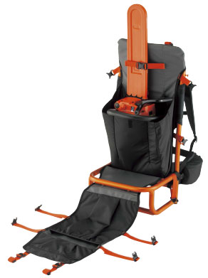ロガーフレームパックに装着することでチェーンソー、燃料、工具など、伐採作業に必要な荷物を効率よくセットでき、安定した運搬を可能にします。