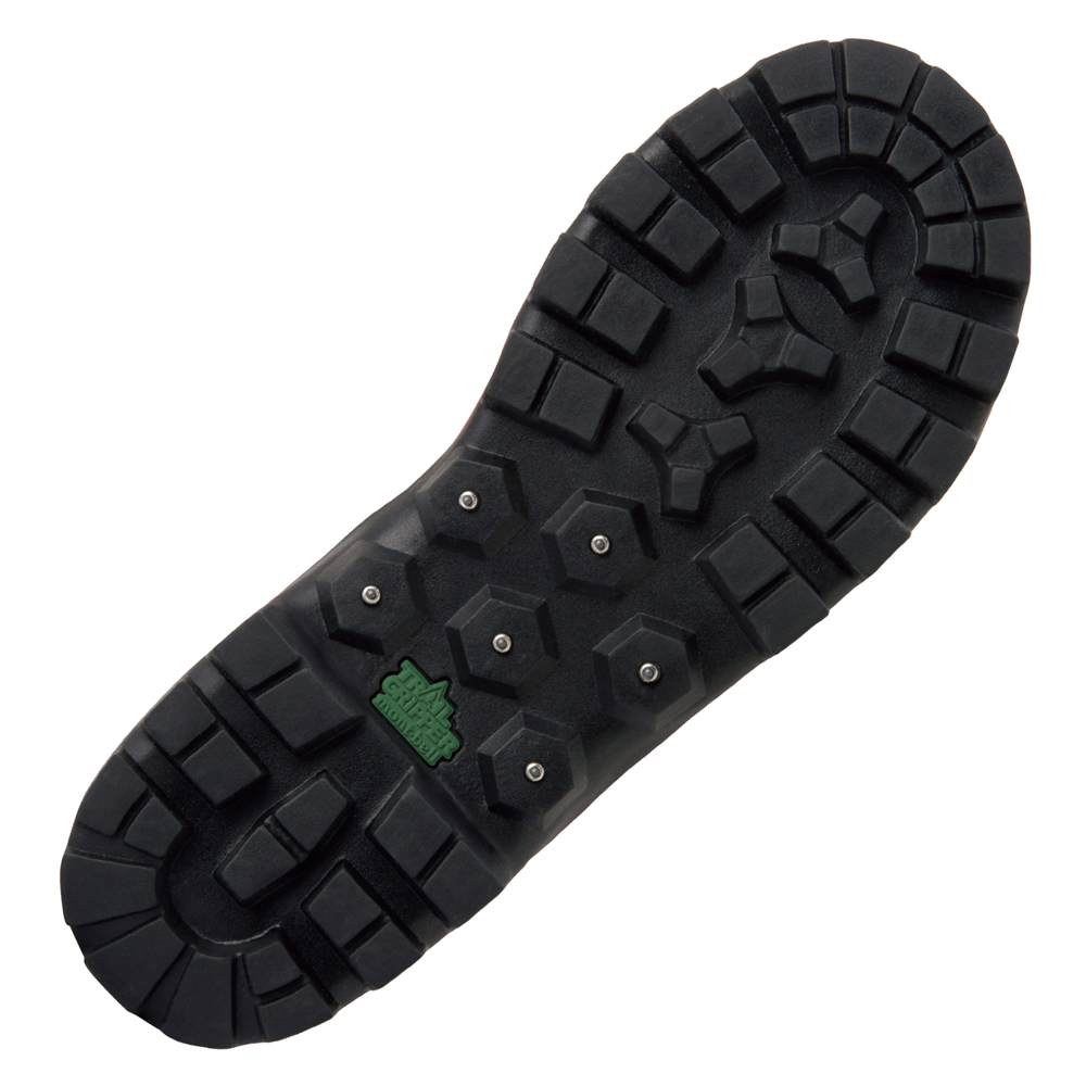 平らな地面に干渉しない土踏まず部分に、タングステンカーバイド製スパイクを装備。丸太などの上でも滑りにくくなっています。