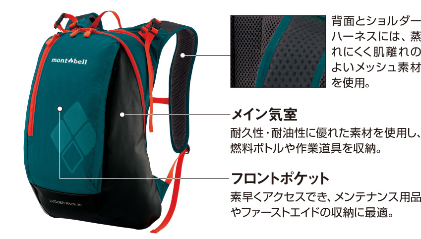 ※写真はロガーパック 20とファーストエイドバッグ Sを使用