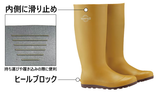 ふくらはぎ部分の内側には、滑り止めを配置。ヒールブロック付きで脱ぎやすい仕様です。
