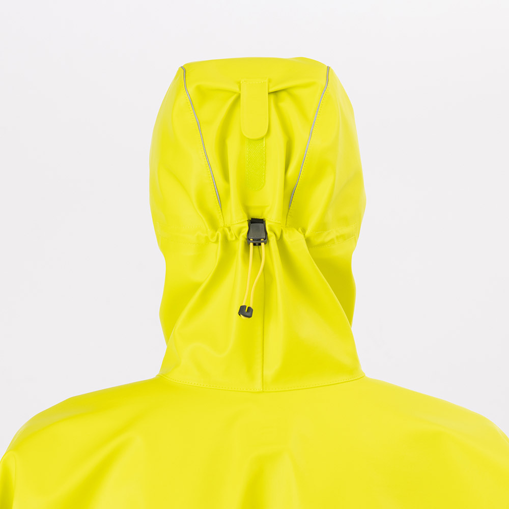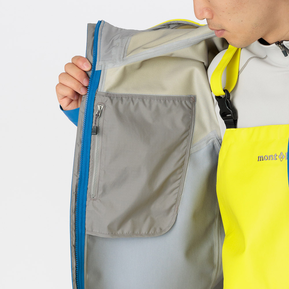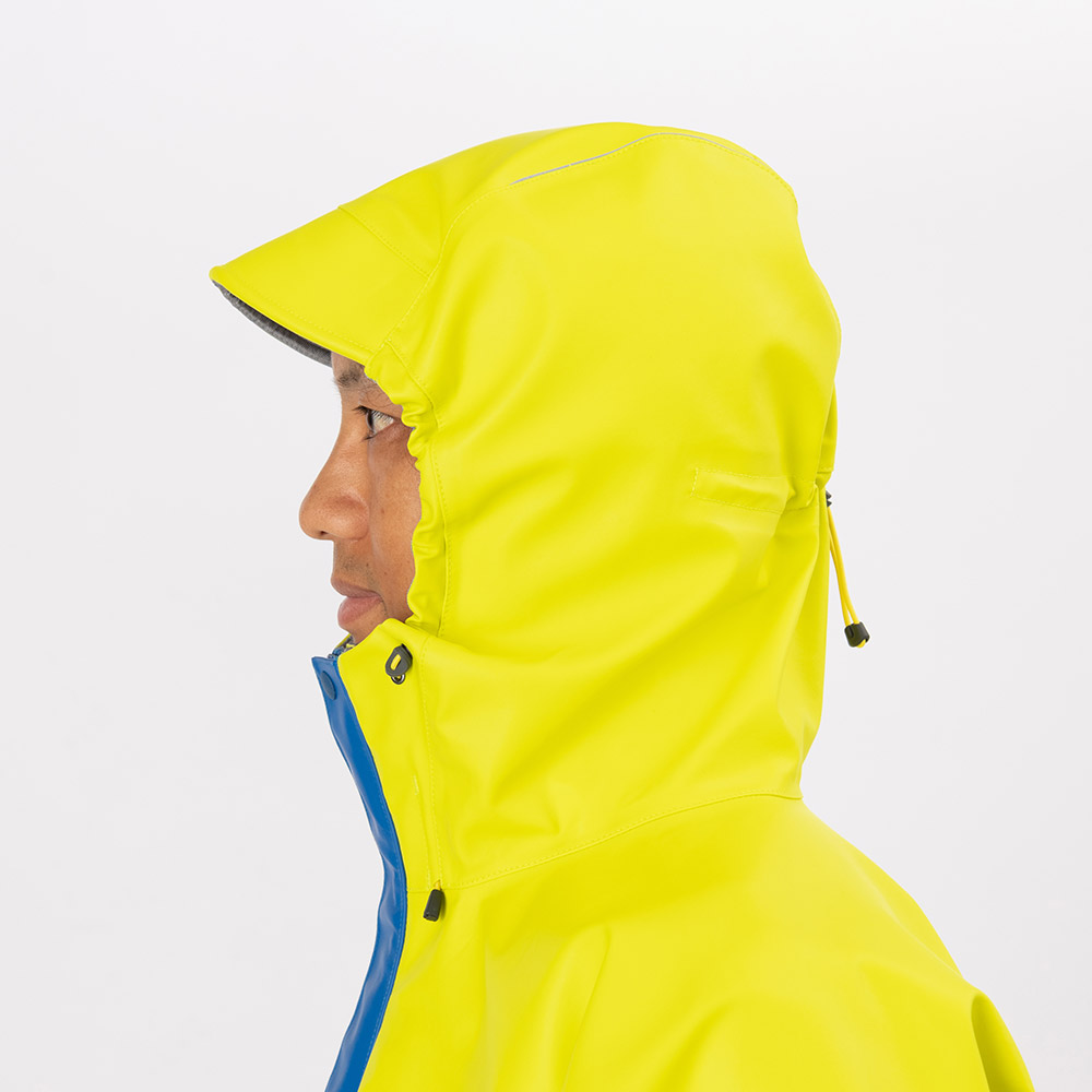 【特長】トライアクスルフード / ロールアップフード / 運動性を高める独自のパターン / 浸水を防ぐ接着加工 / はっ水ジッパー / フードには反射テープを配置 / ジッパーの上にかぶさる2枚のフラップで水の浸入を防止 / インナーカフ