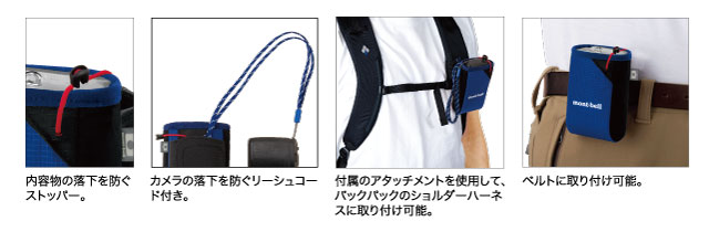取り出しやすさとホールド性を両立したカメラケースです。本体には滑りがよい素材を使用し、型くずれを防ぐ樹脂ボードを挿入することで、素早い取り出しを可能にしています。側面にはホールド性を高めるために、クッション性・ストレッチ性を備えた素材を使用しています。ベルトに取り付けできる樹脂製クリップと、バックパックのショルダーハーネスに取り付けできるアタッチメントが付属します。