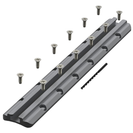 YKTCスクリューボールをはじめ、YKTCシステムの取り付け用レールです。取り付けたマウントはレール上を簡単にスライドさせられるので、使い勝手も抜群に良いです。取り付けスクリューとドリル刃を付属。